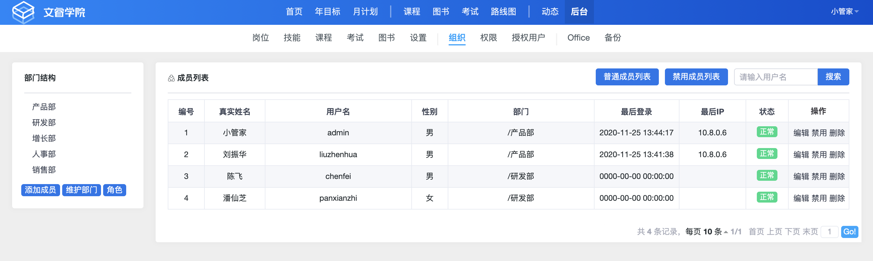 文睿学院主要包括两部分:一是面向管理者的后台;二是面向员工的前台。