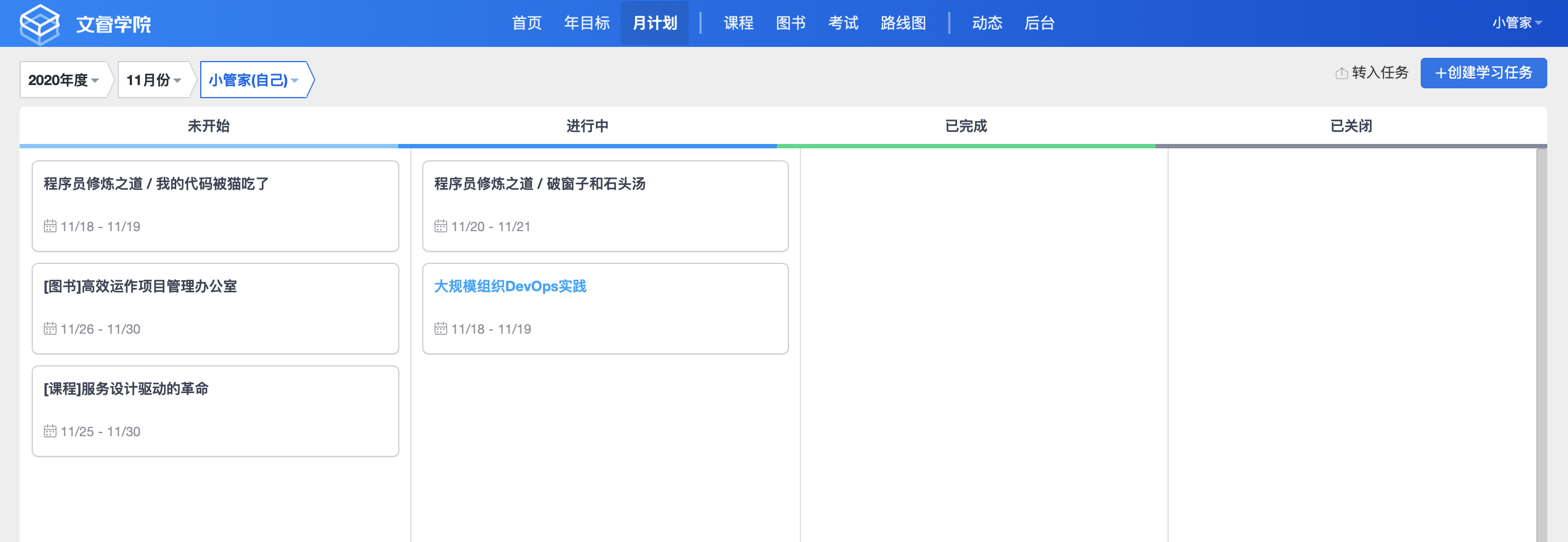 员工可以基于年度目标按月拆分学习任务,通过月计划跟踪和管理自己的学习过程。