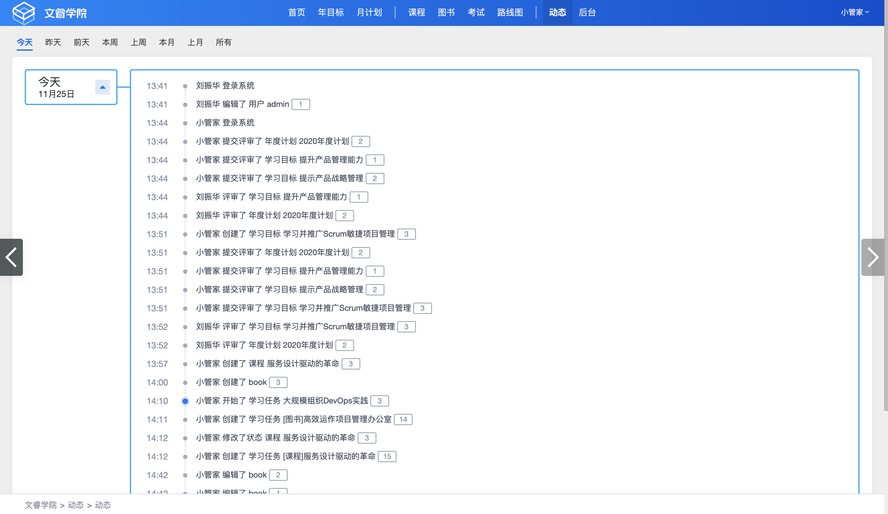 员工可以通过动态查看到自己和其他同事的学习记录,可以了解到他人的学习动向。